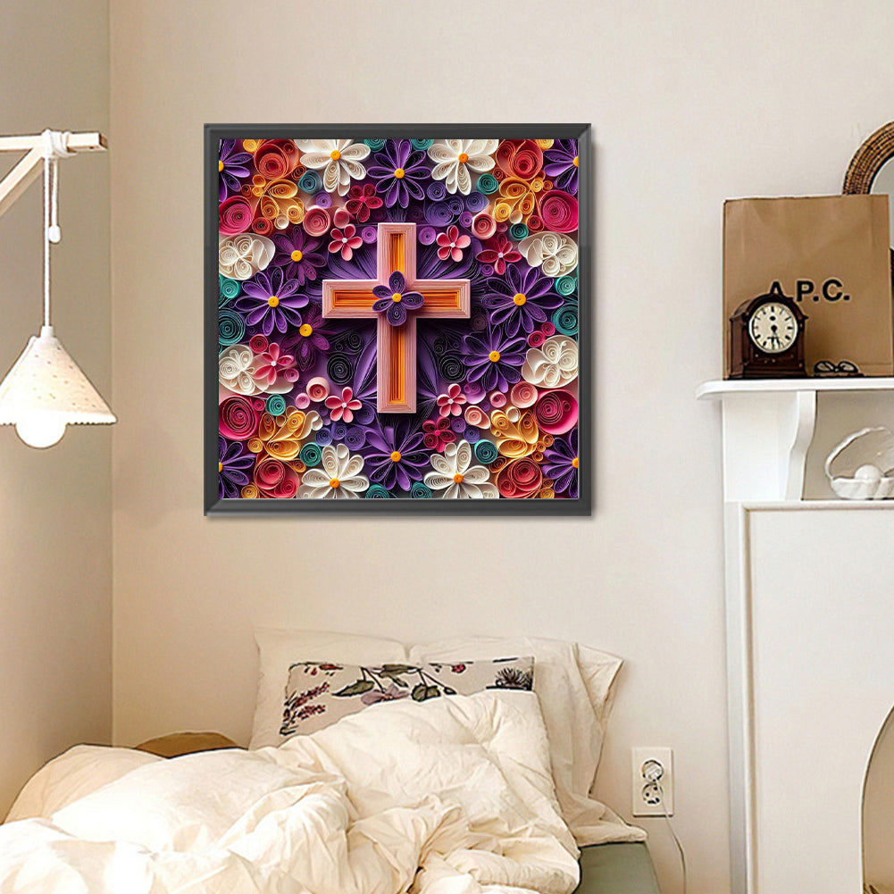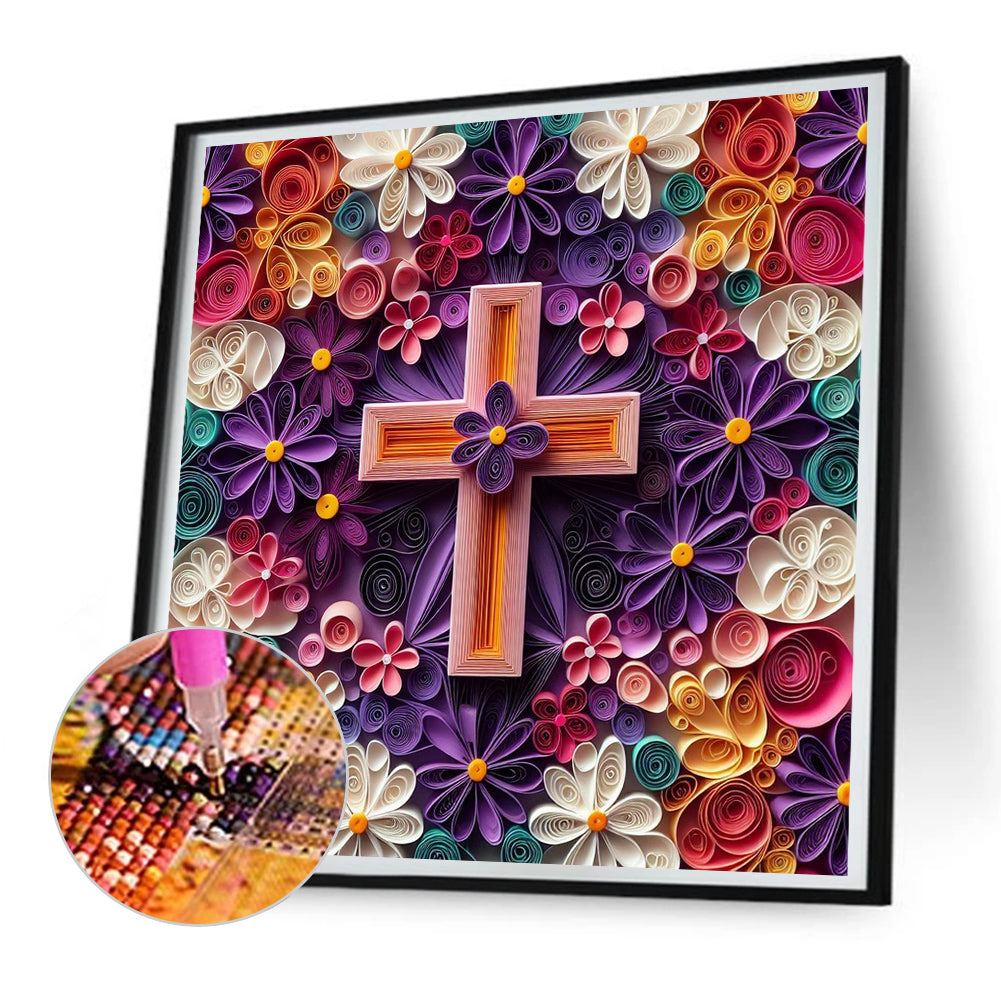 Diamond Painting - Full Round - Paper flower cross (30*30CM)