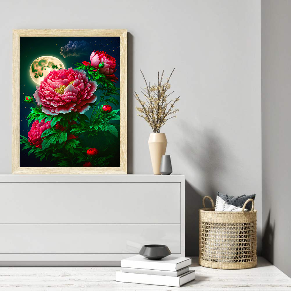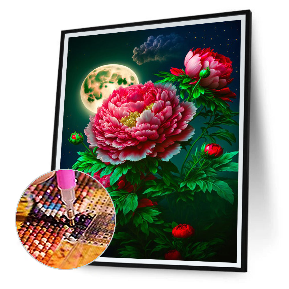 Diamond Painting - Full Round - Peony-Blooming and full moon (30*40CM)