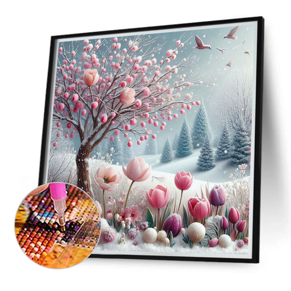 Diamond Painting - Full Round - Plum blossoms and tulips (40*40CM)