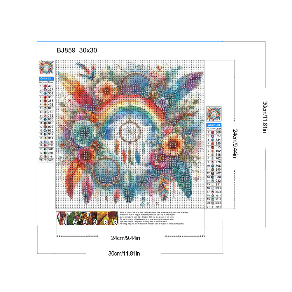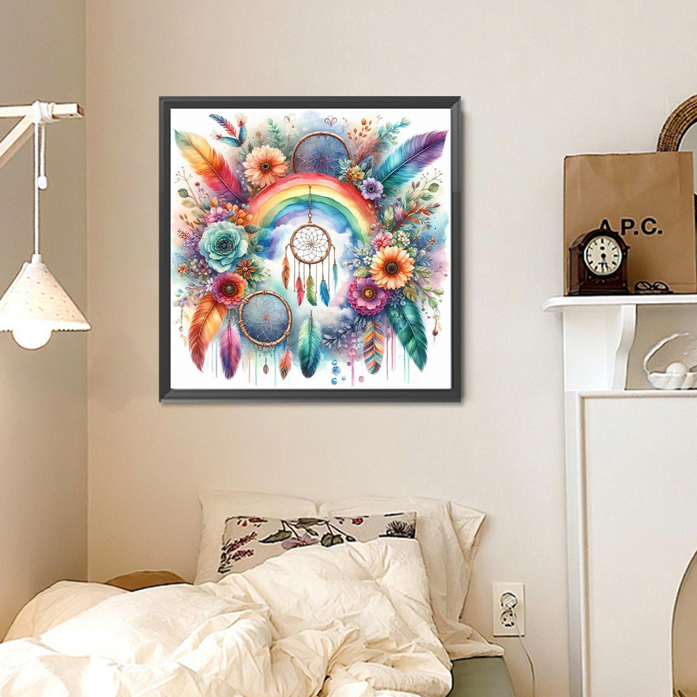Diamond Painting - Full Round - Rainbow flower dream catcher (30*30CM)