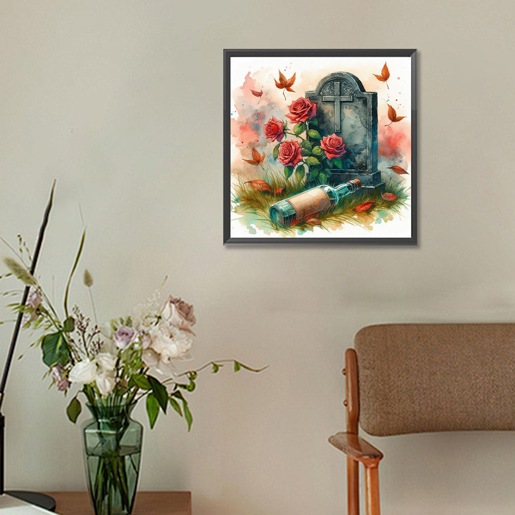 Diamond Painting - Full Round - Red rose grave (30*30CM)