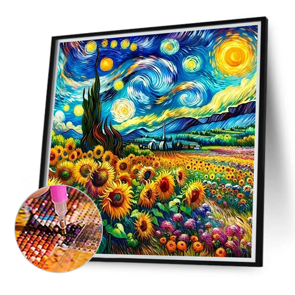 Diamond Painting - Full Round - Sunflower and starry sky (40*40CM)