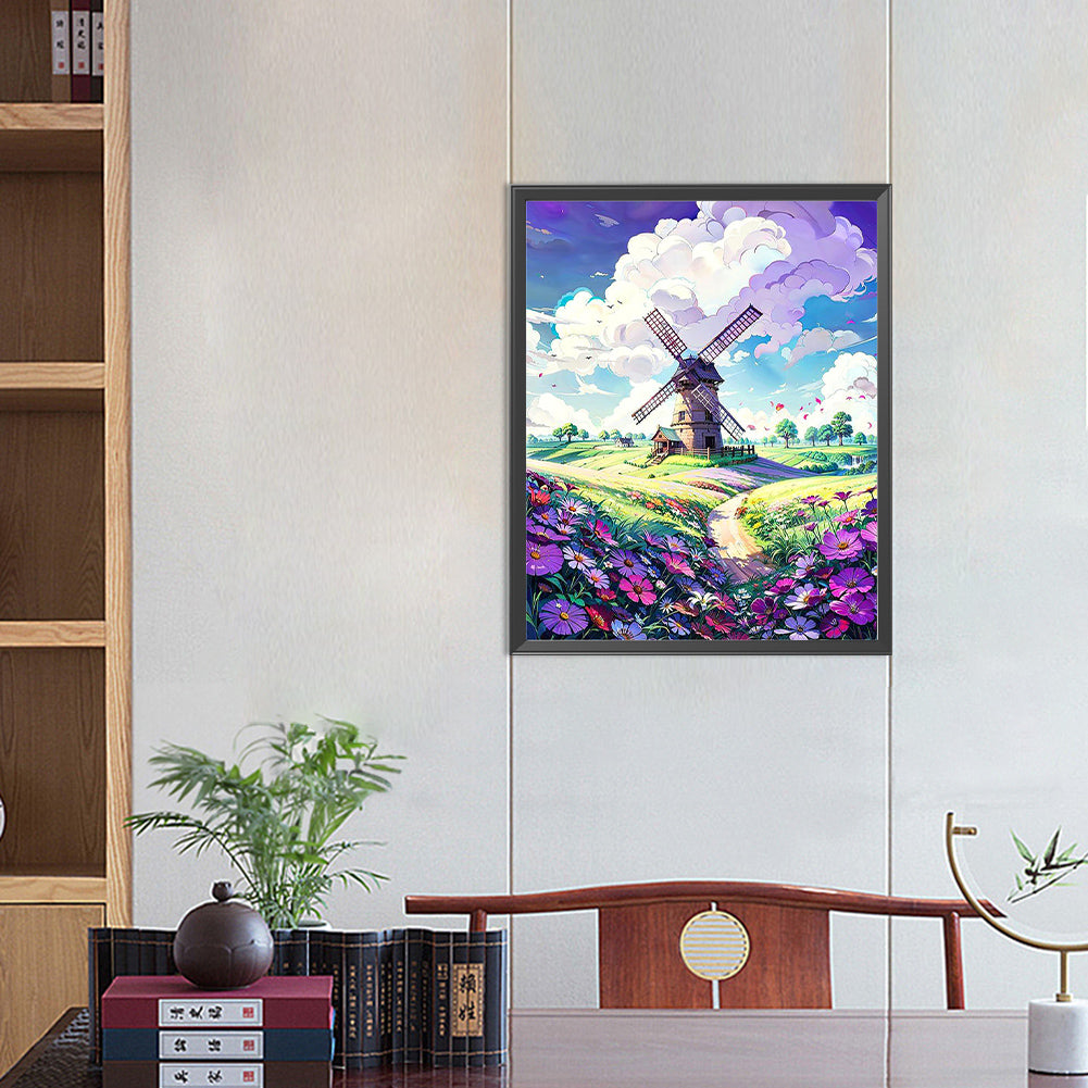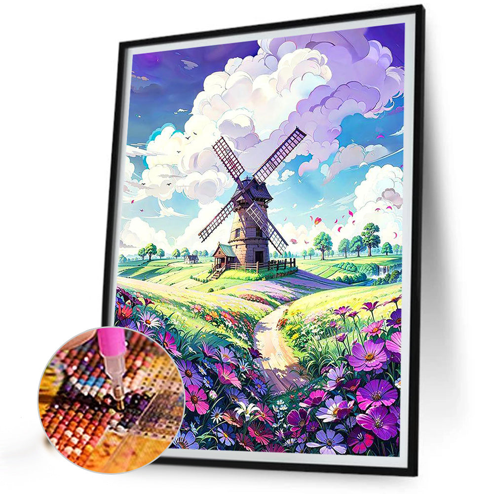 Diamond Painting - Full Round - Windmill on the mountain (40*50CM)