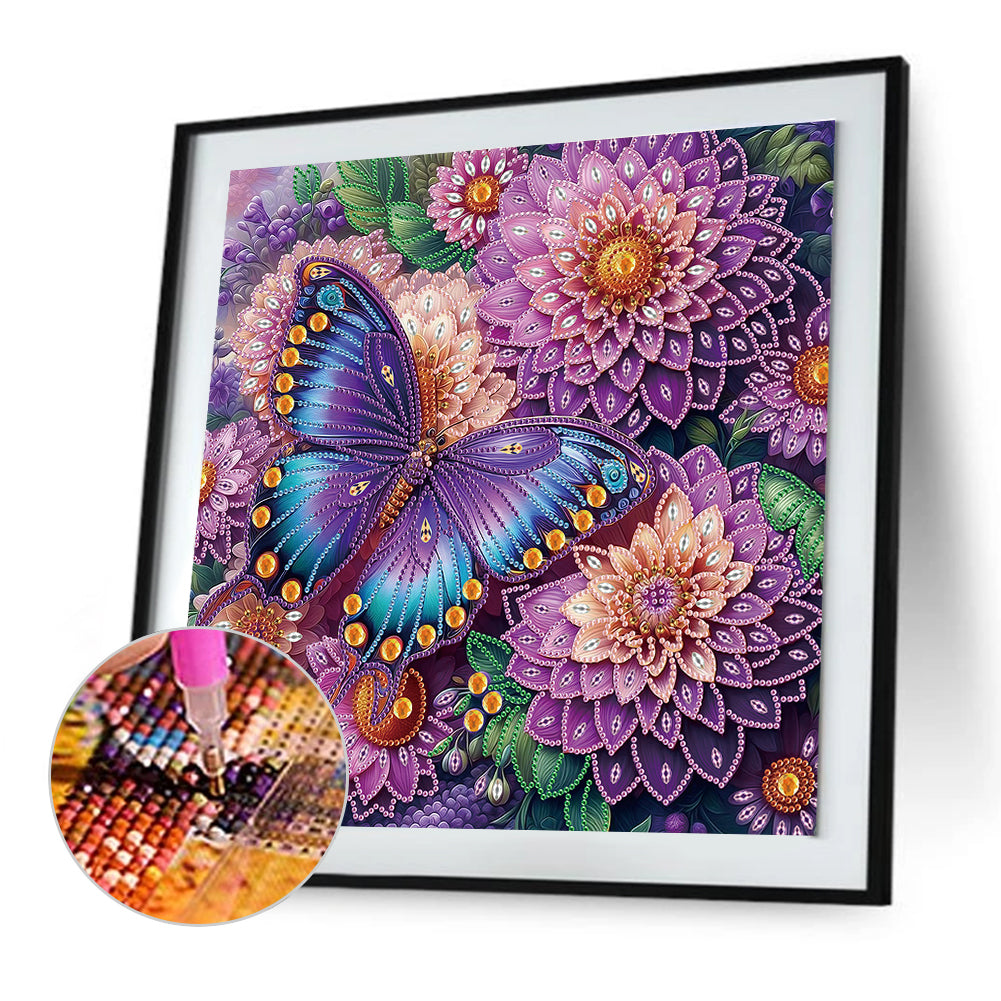 Diamond Painting - Partial Special Shaped - Dreamy flowers and butterflies (40*40CM)
