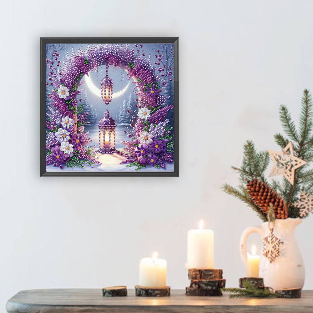 Diamond Painting - Partial Special Shaped - Flower Gate Night Lights (30*30CM)