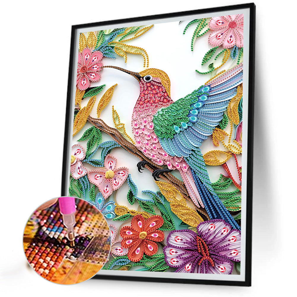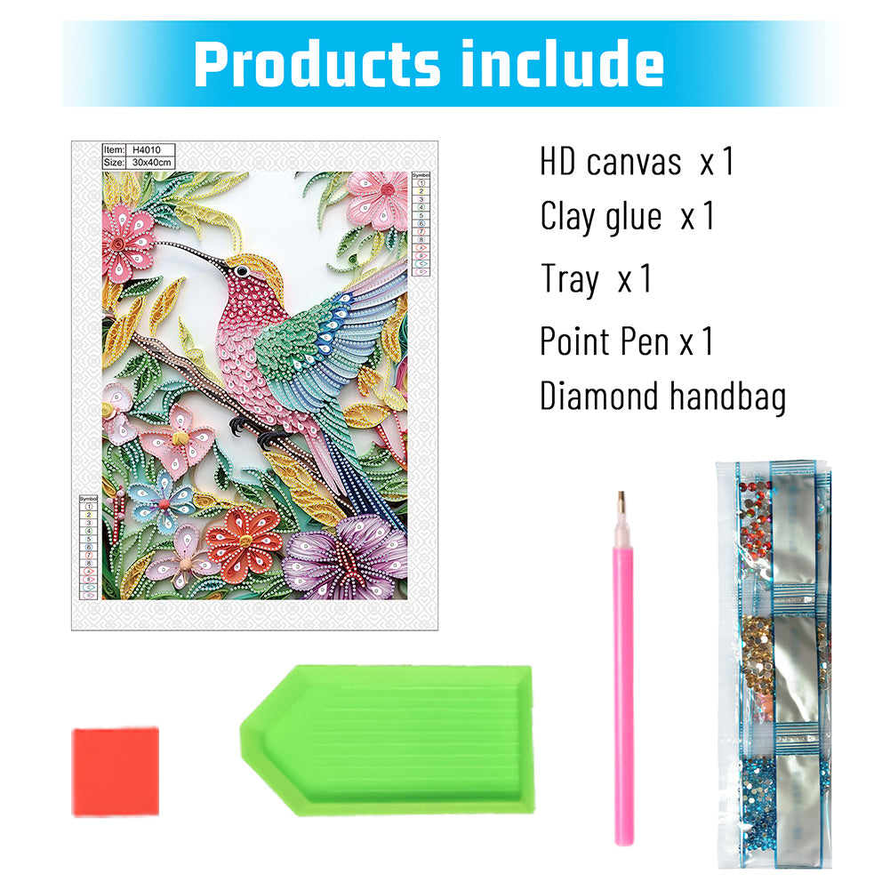 Diamond Painting - Partial Special Shaped - Flower hummingbird (30*40CM)