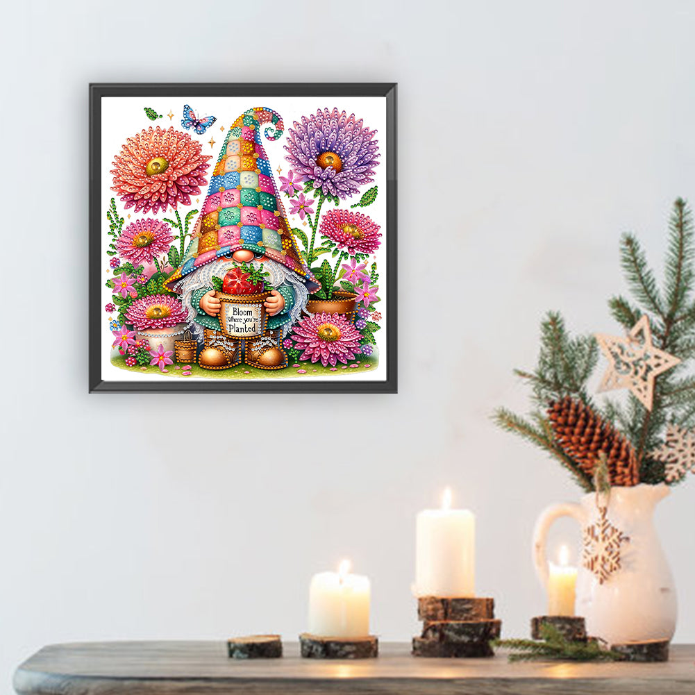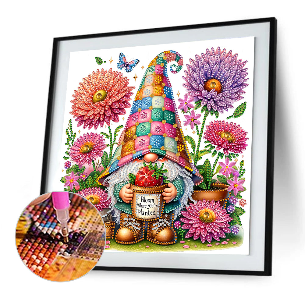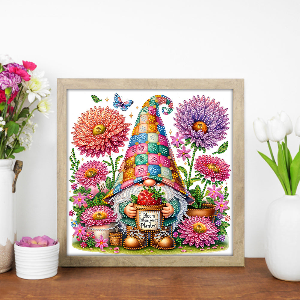 Diamond Painting - Partial Special Shaped - Flowers And Gnomes (30*30CM)
