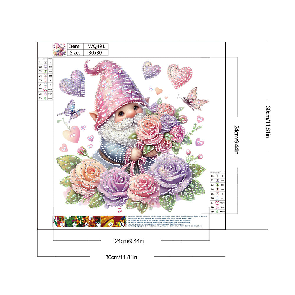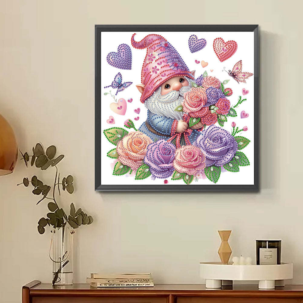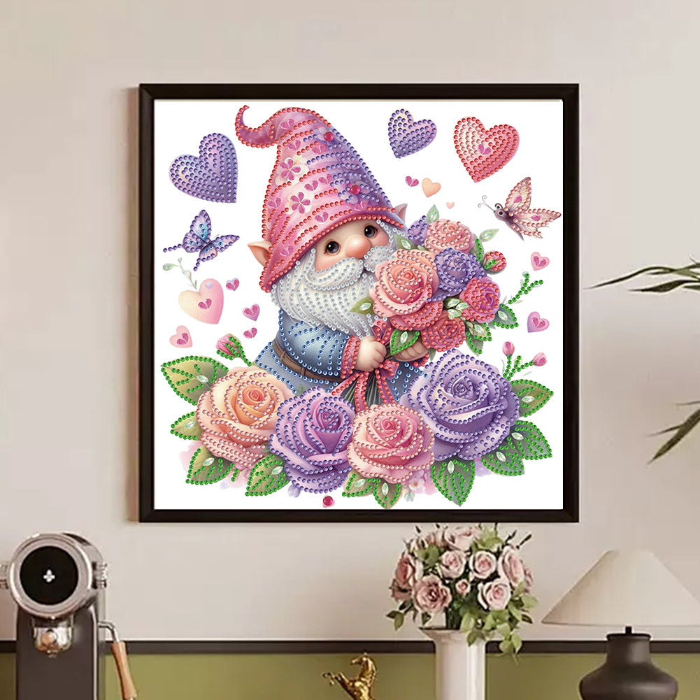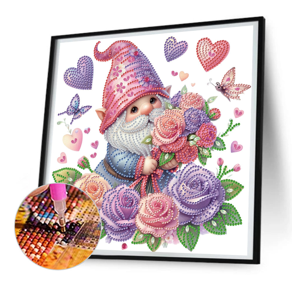 Diamond Painting - Partial Special Shaped - Gnome And Flowers (30*30CM)