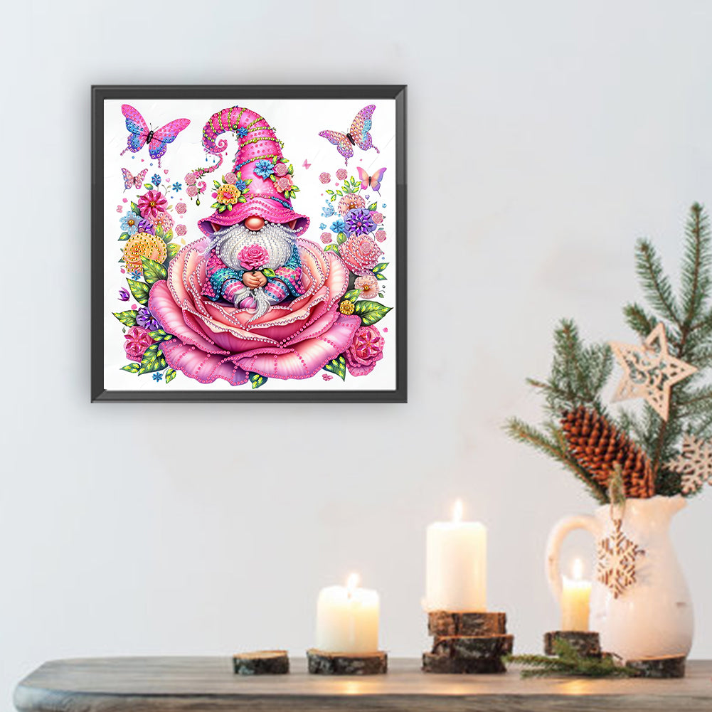 Diamond Painting - Partial Special Shaped - Rose And Gnome (30*30CM)