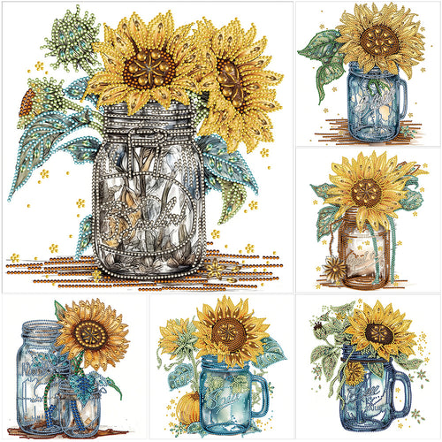 Diamond Painting - Partial Special Shaped - sunflower glass art bottle (30*30CM)