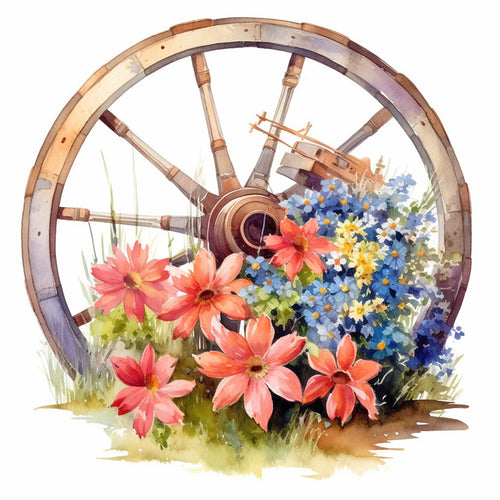 Diamond Painting - Full Round - flowers and wheels (30*30CM)