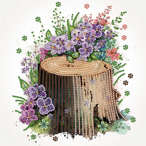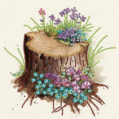 Diamond Painting - Partial Special Shaped - The tenacious blooming flowers in the wooden pile (30*30CM)
