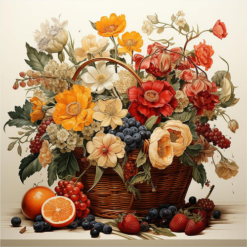 Diamond Painting - Full Round - Basket full of flowers and fruits (40*40CM)