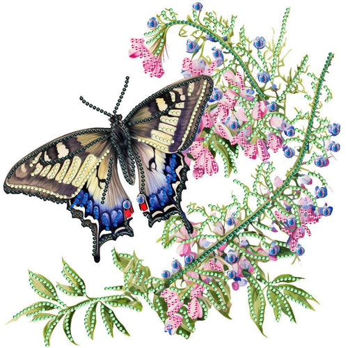 Diamond Painting - Partial Special Shaped - Flower fragrance and butterfly dance (30*30CM)