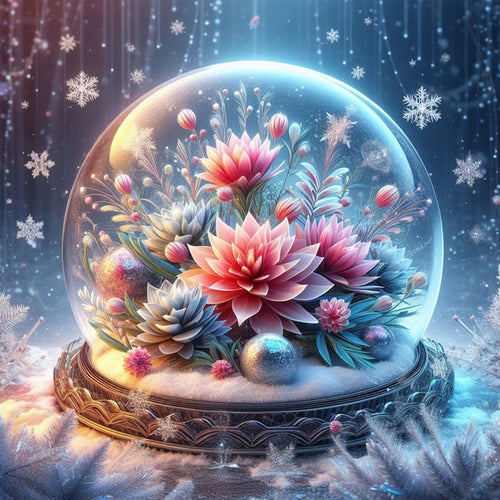 Diamond Painting - Full Round - Beautiful flowers in crystal ball (30*30CM)