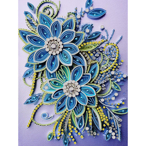 Diamond Painting - Partial Special Shaped - Blue flower quill paper painting (30*30CM)