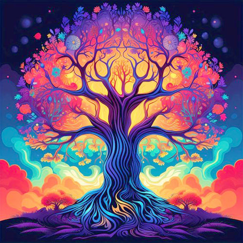 Diamond Painting - Full Round - Colorful tree of life at night (30*30CM)