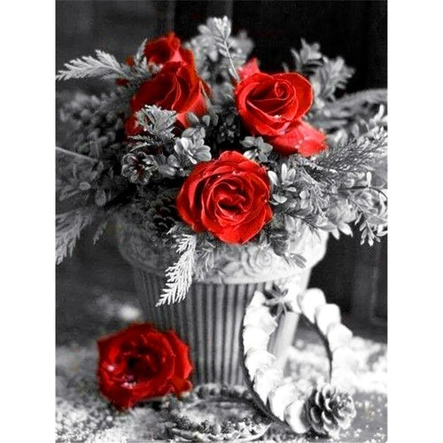 Diamond Painting - Full Round - black and white red rose (30*40CM)