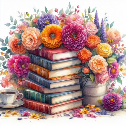 Diamond Painting - Full Round - Flowers and books (40*40CM)