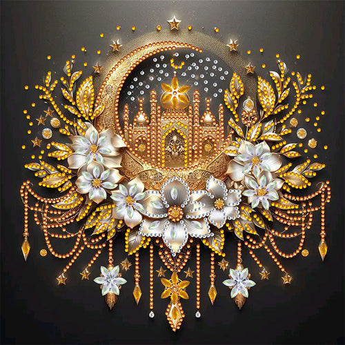 Diamond Painting - Partial Special Shaped - White Flower Crescent Moon Castle (30*30CM)