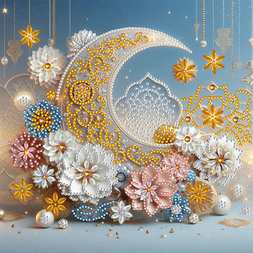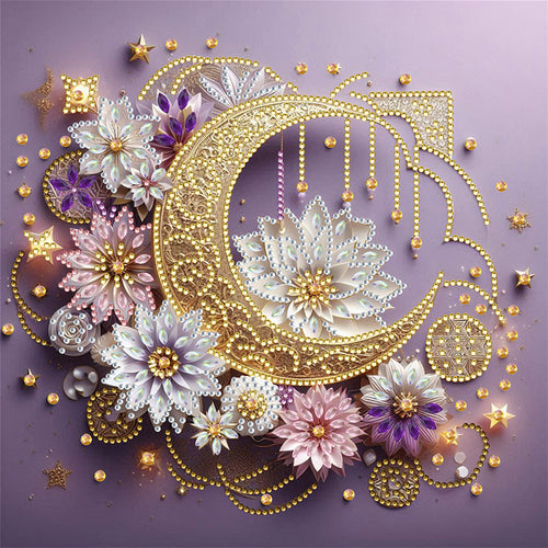 Diamond Painting - Partial Special Shaped - Flower Crescent Moon (30*30CM)