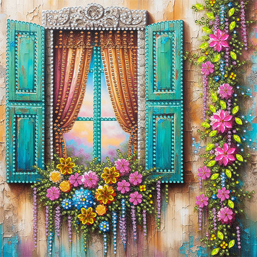Diamond Painting - Partial Special Shaped - Flower Window (30*30CM)