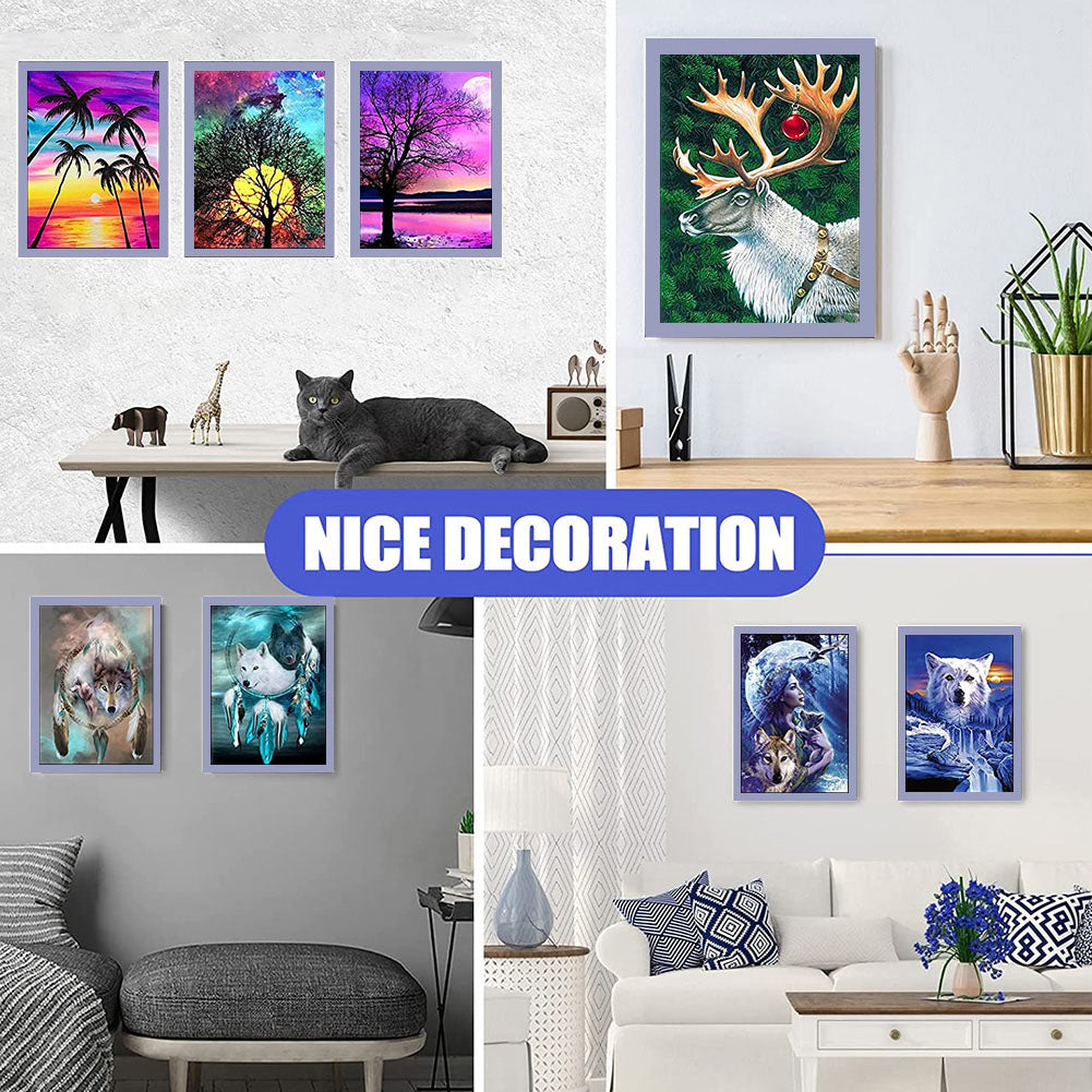 1.Lightweight PVC Panel: Our diamond painting frames feature a lightweight PVC panel with a self-adhesive backing. This allows you to easily adhere it to walls or smooth solid surfaces, providing a seamless display for your artwork.