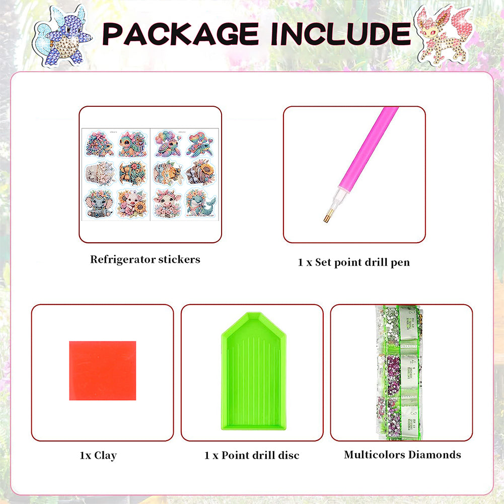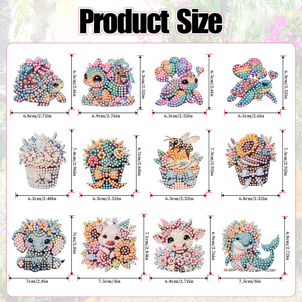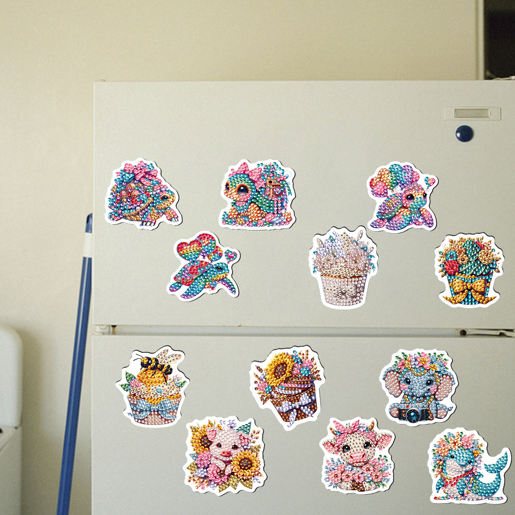 12Pcs Diamond Painting Fridge Magnet Animal Cupcake Diamond Art Fridge Stickers