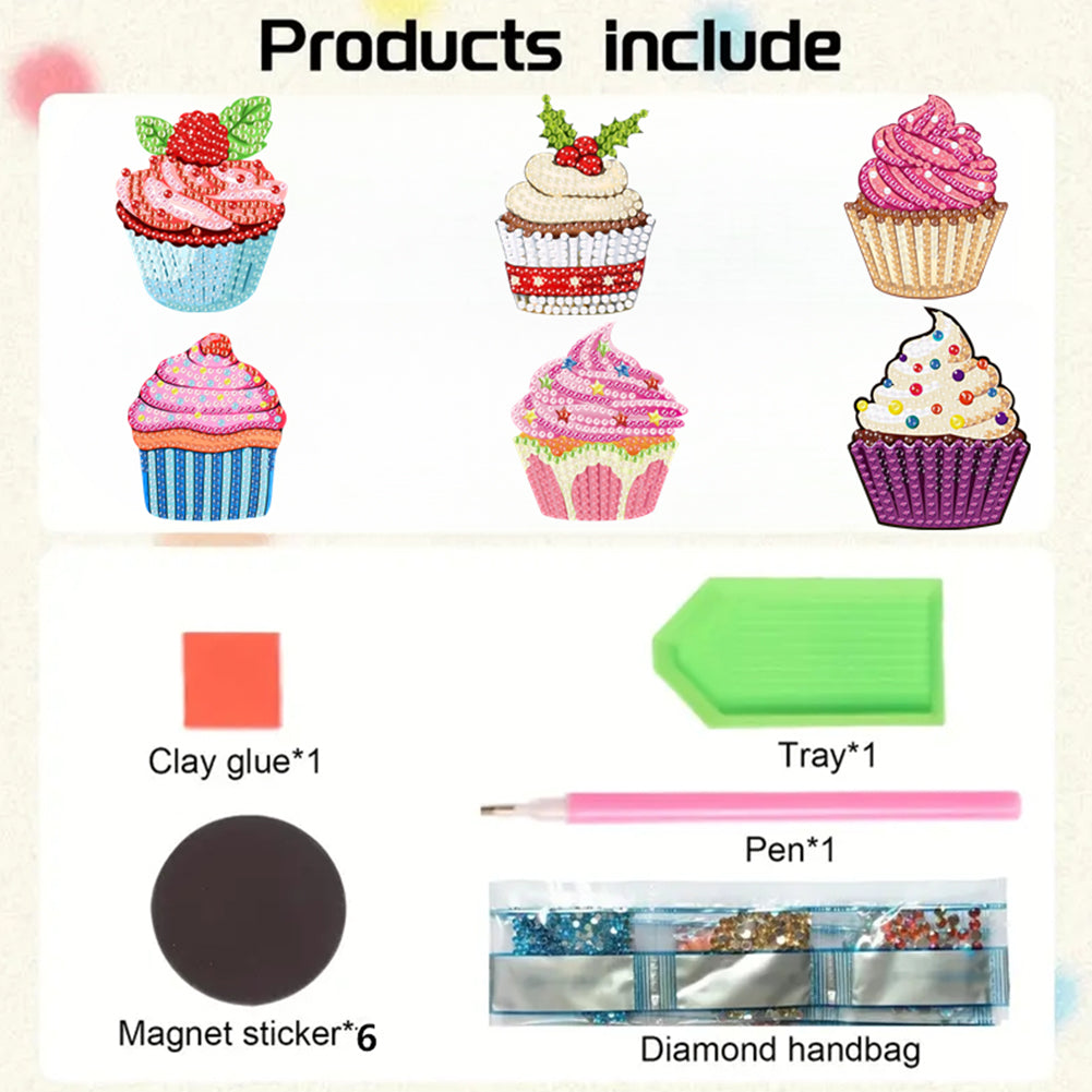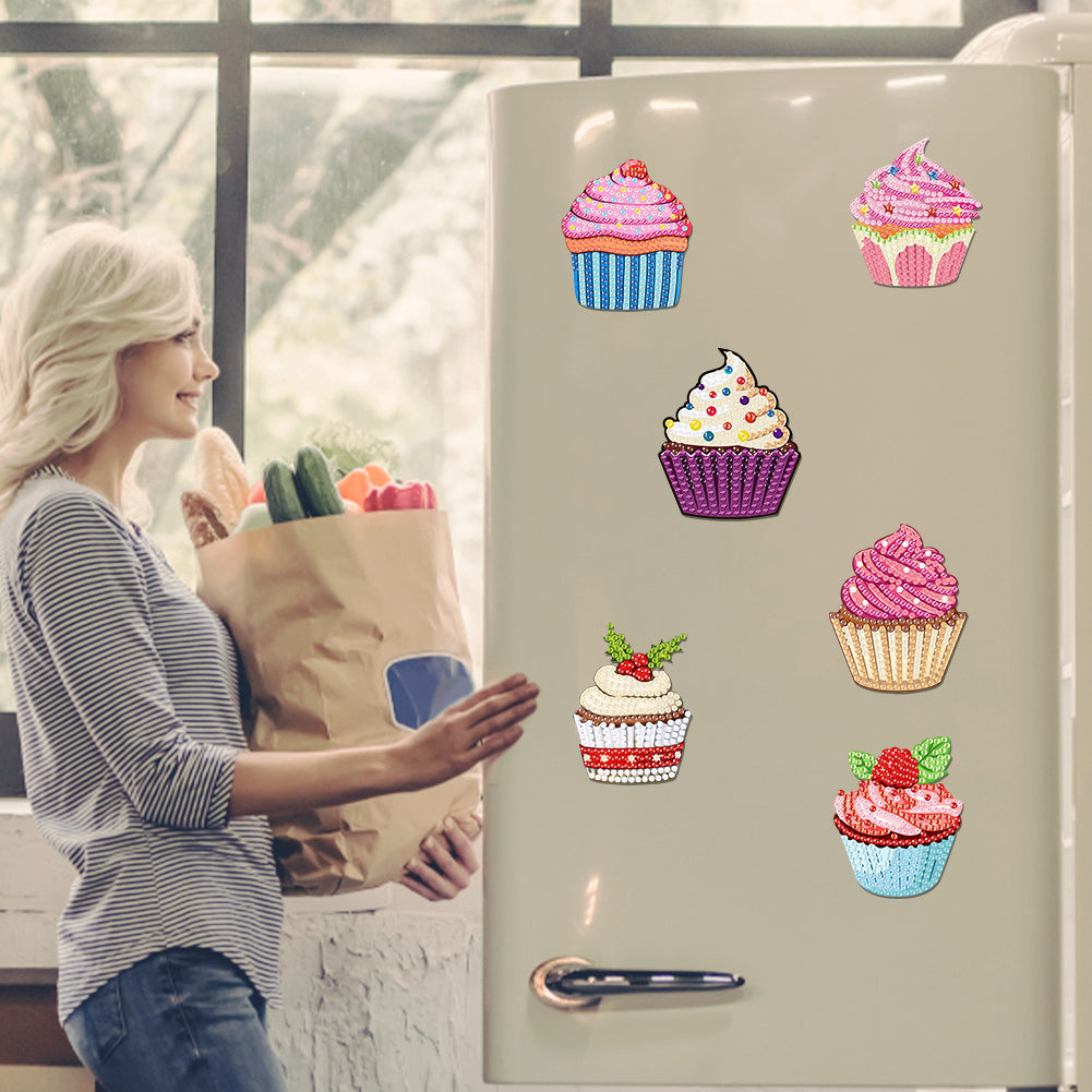 6Pcs Acrylic Colorful Cupcakes 5D DIY Diamond Art Magnets Crafts for Adults Kids
