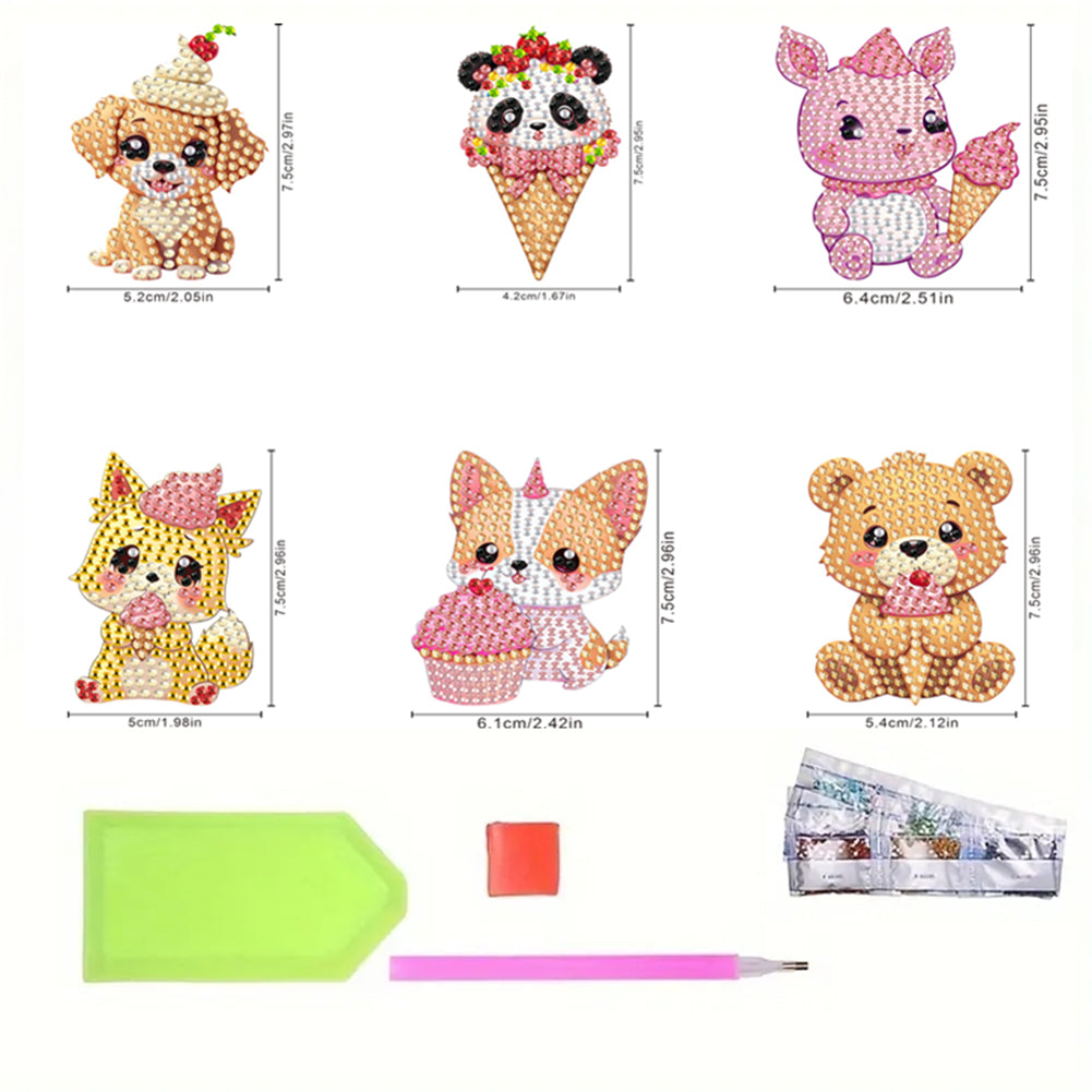 6Pcs Acrylic Animals Fridge Stickers Diamond Art Fridge Magnet Diamond Painting Refrigerator Magnet for Adults Beginners