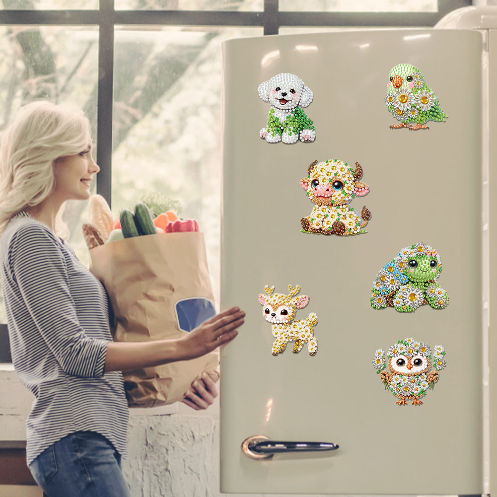 6Pcs Acrylic Daisy Animal Diamond Painting Art Fridge Magnet for Adults Beginner