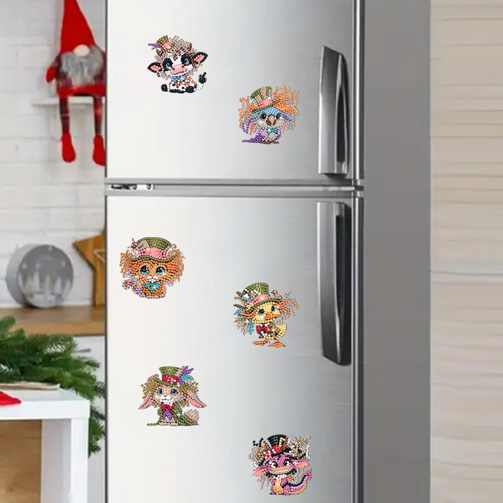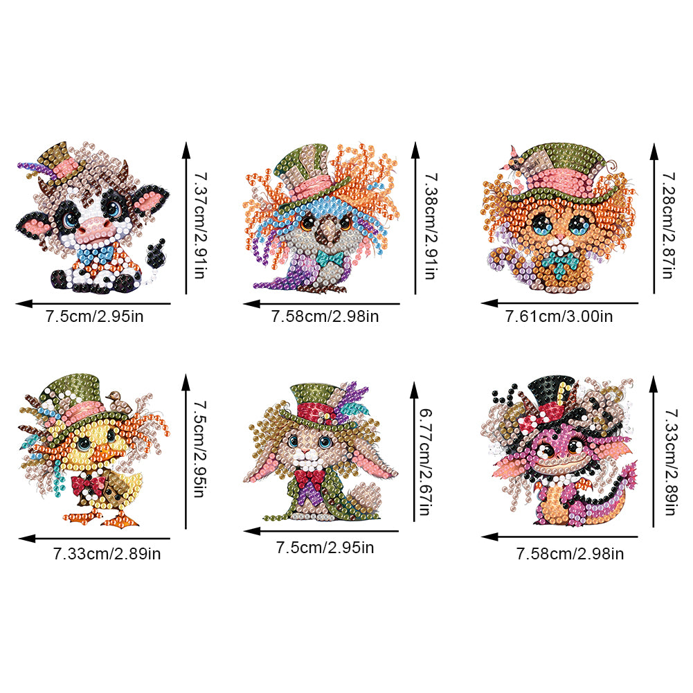 6Pcs Acrylic Special Shape Animal with Hat Diamond Painting Fridge Magnet