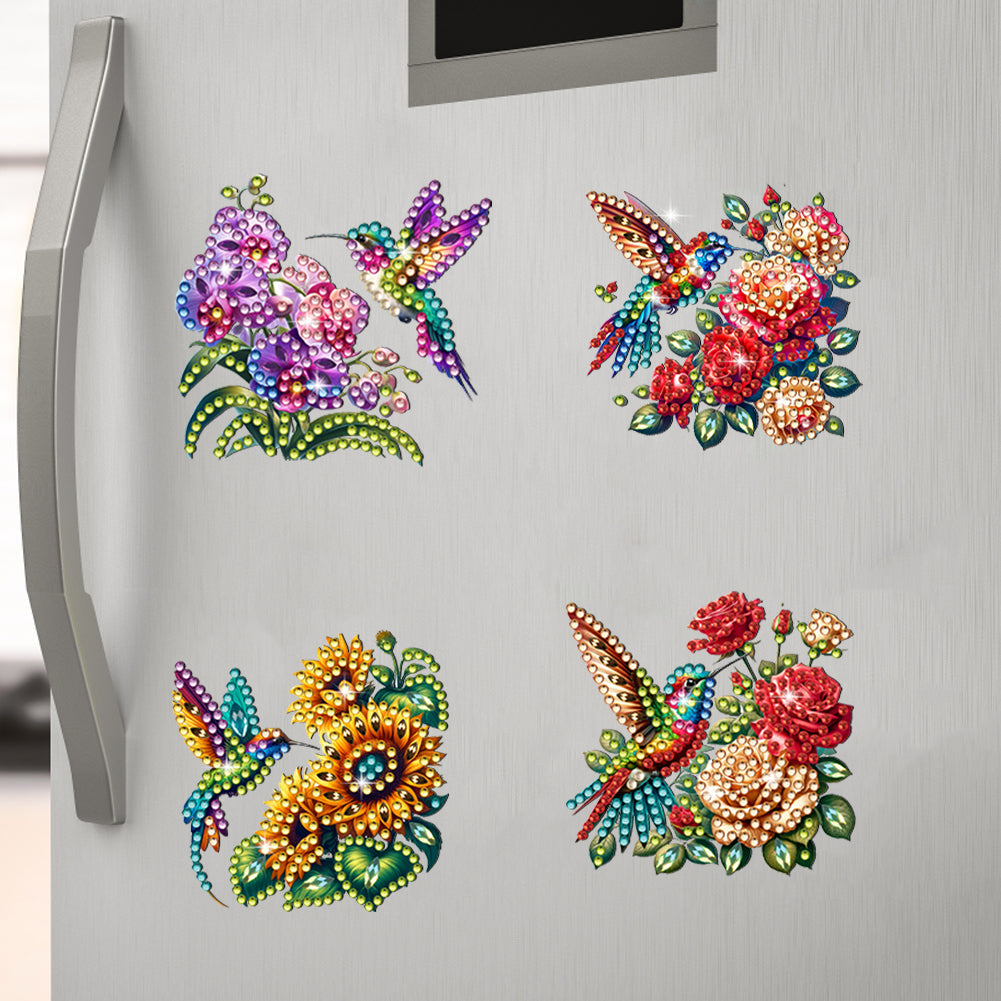 6Pcs Acrylic Special Shape Bird And Flower Diamond Painting Fridge Magnet