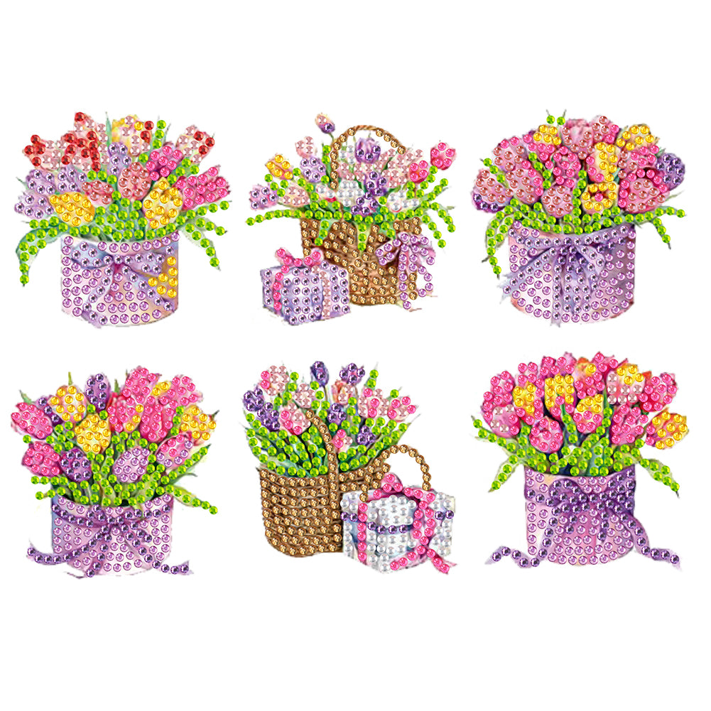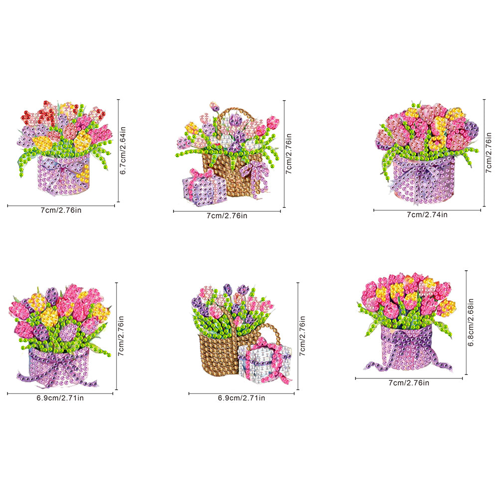 6Pcs Acrylic Tulip DIY Diamond Art Refrigerator Magnets Sticker for Beginners