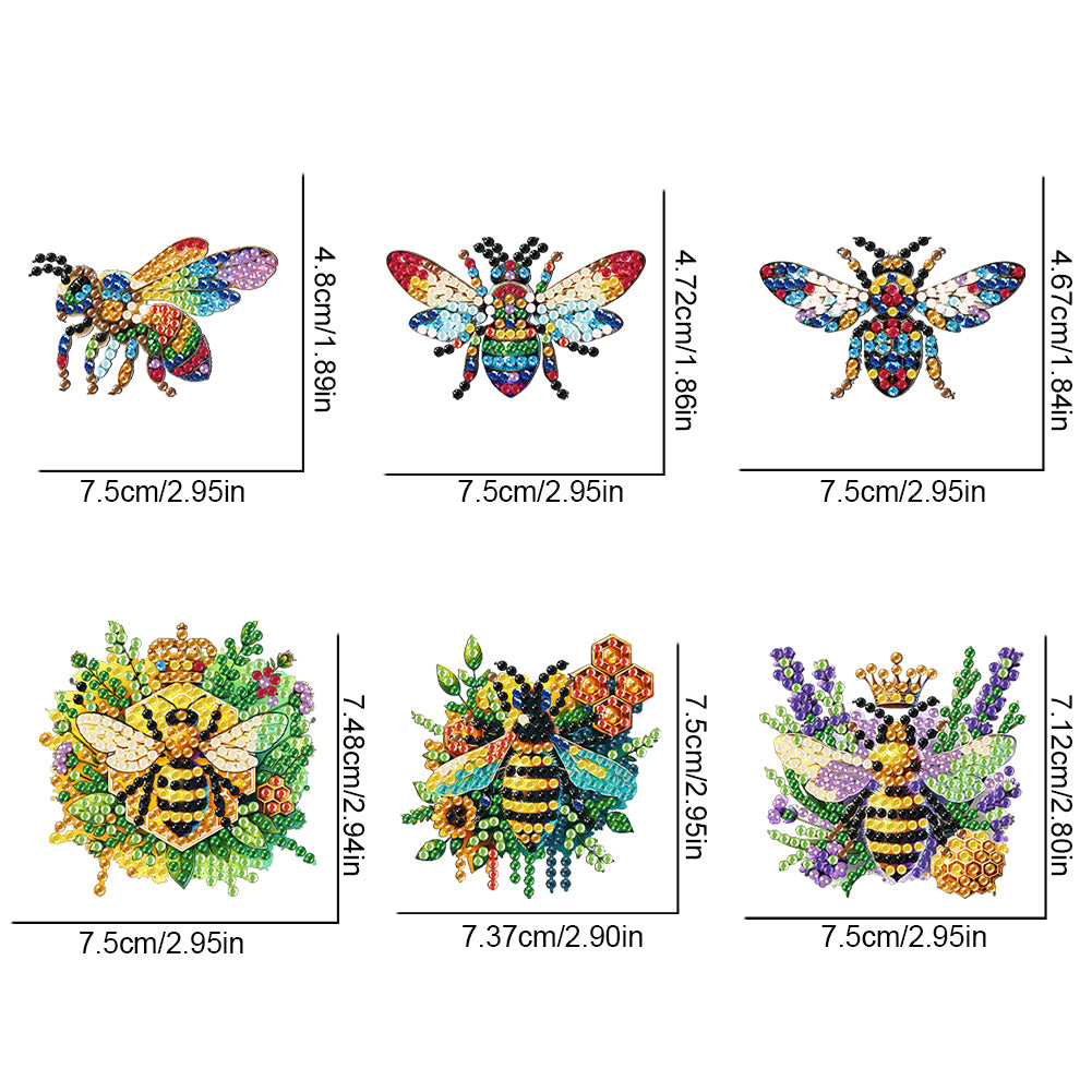 6Pcs Bees Diamond Painting Fridge Magnet Diamond Art Fridge Stickers for Home