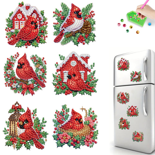 6Pcs Acrylic Christmas Fridge Stickers Diamond Art Magnets Decals for Home Decor
