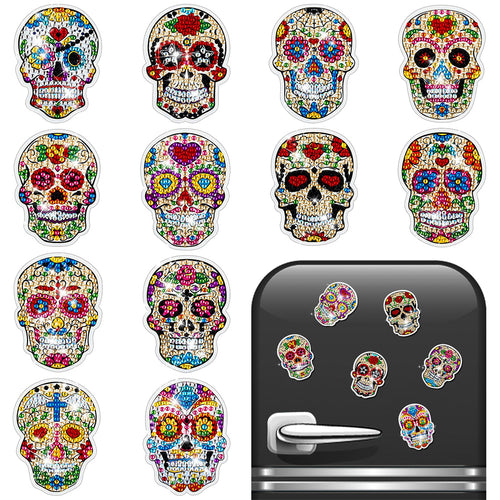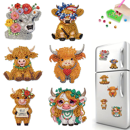 6Pcs Acrylic Cow Skull Diamond Painting Art Fridge Magnet for Adults Beginners