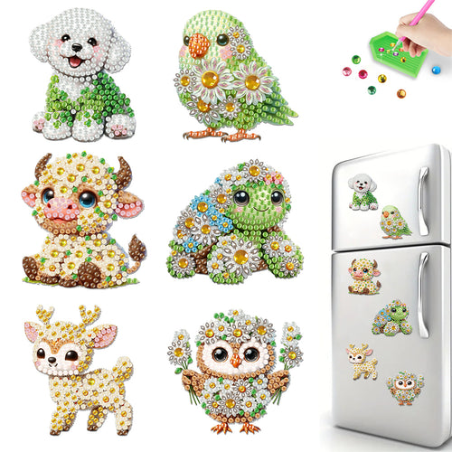 6Pcs Acrylic Daisy Animal Diamond Painting Art Fridge Magnet for Adults Beginner