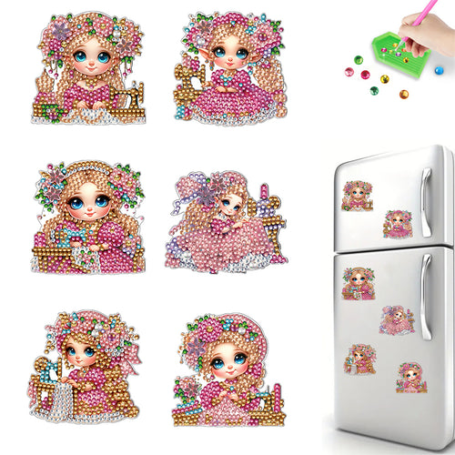 6Pcs Acrylic Special Shape Garden Gnome Diamond Painting Fridge Magnet