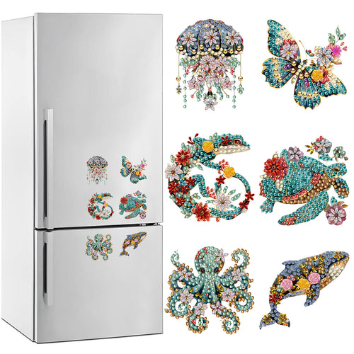 6Pcs Acrylic Special Shape Flowers and Animal Diamond Painting Fridge Magnets