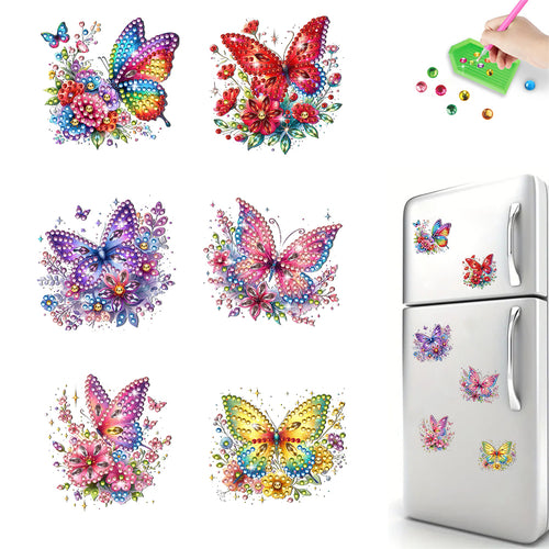6Pcs Acrylic Special Shape Butterfly And Flower Diamond Painting Fridge Magnet