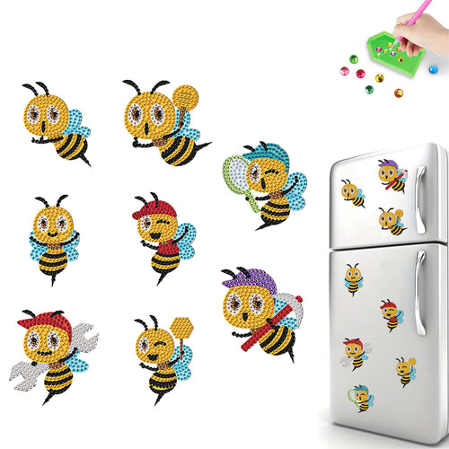 8Pcs Special Shape Bee Diamond Painting Fridge Stickers for Home Decor