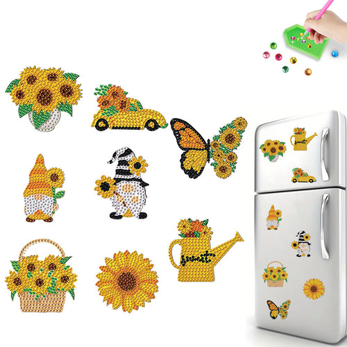 8Pcs Special Shape Sunflower Diamond Painting Fridge Stickers for Home Decor