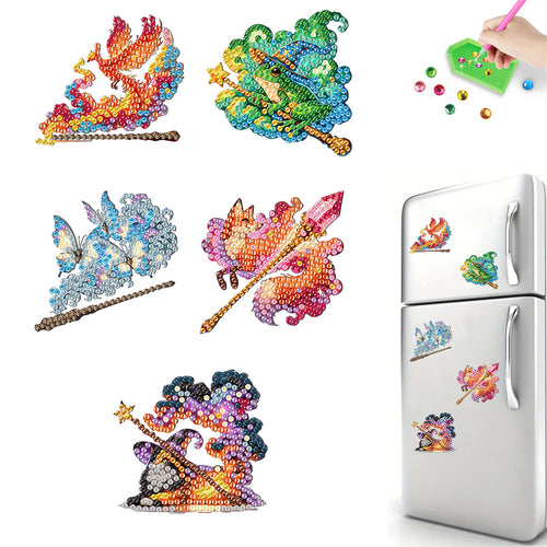 5Pcs Acrylic Magic Wand Patronus Diamond Art Fridge Magnet for Fridge Whiteboard