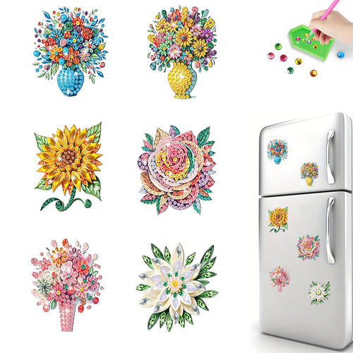 6Pcs Acrylic Special Shape Flower Fridge Stickers Diamond Painting Fridge Magnet