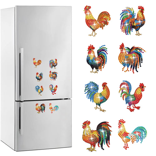8Pcs Special Shape Rooster Diamond Painting Fridge Magnet for Fridge Whiteboards