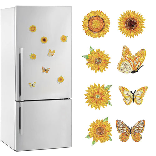 8Pcs Special Shape Sunflowers Butterflies Diamond Painting Fridge Magnet