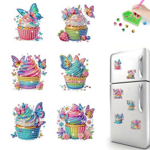 6Pcs Acrylic Special Shape Cupcake Diamond Painting Fridge Magnet for Home Decor