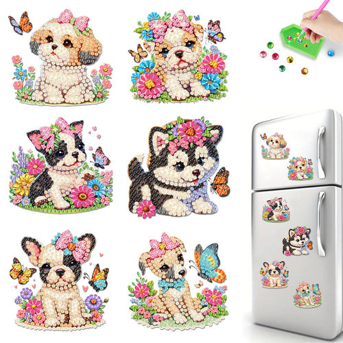 6Pcs Butterfly Puppy Diamond Painting Fridge Magnet Diamond Art Magnets Decals