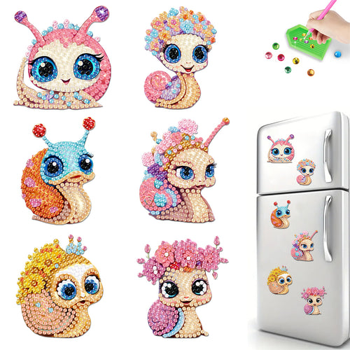 6Pcs Acrylic Snail DIY Diamond Art Refrigerator Magnets Sticker for Beginners